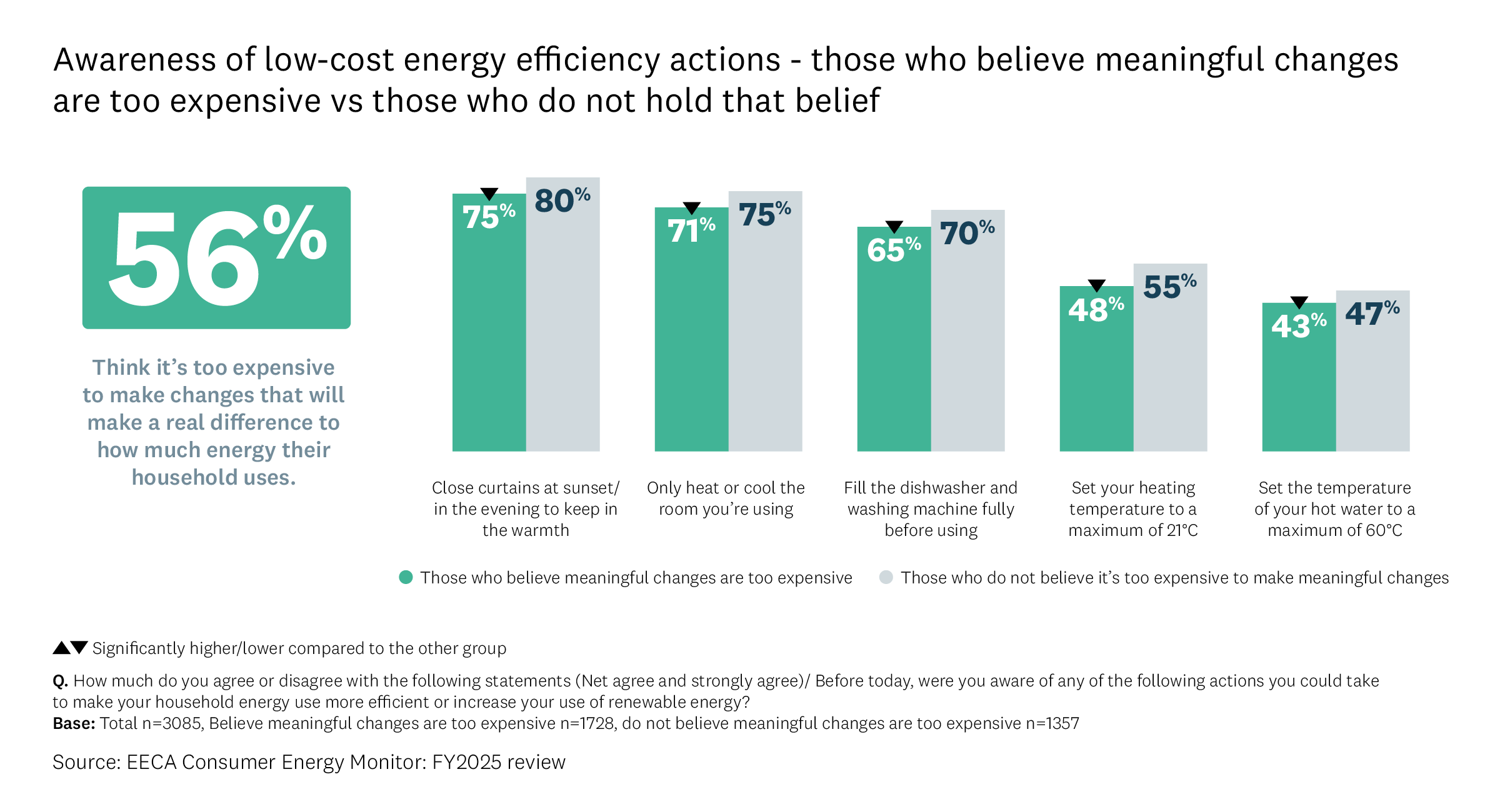 Those who believe meaningful changes to reduce energy costs are too expensive are less likely to be aware of low-cost energy efficiency actions.